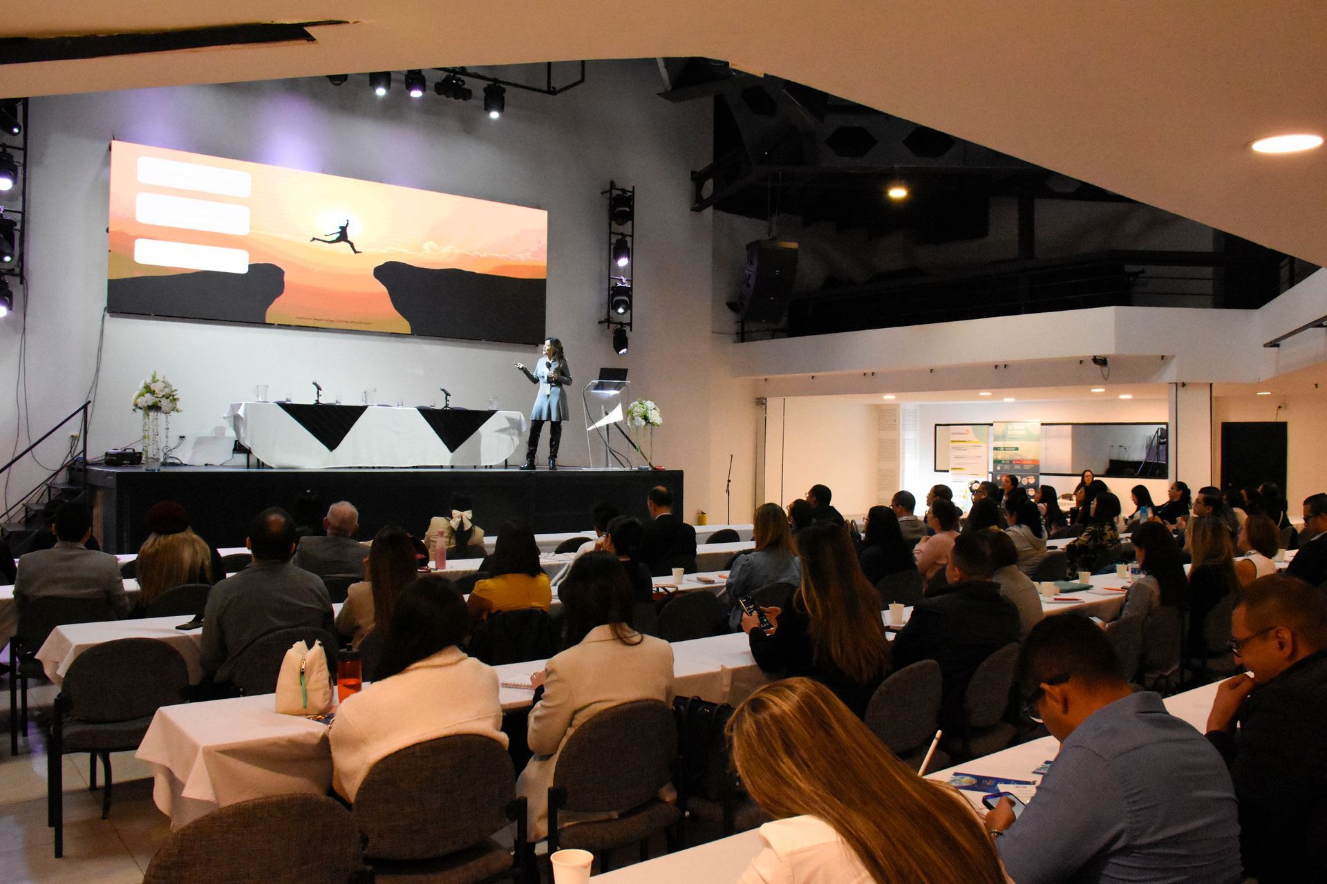 Salones dotados con pantalla gran formato, sonido e iluminación profesional, para la realización de eventos, conferencias, charlas, capacitaciones, activaciones, muestras empresariales.